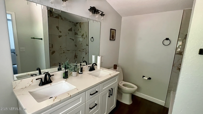 At 1652 ft.² of living space this 4 bedroom 2 bath fully renovated customized property has everything you may need to feel right at home. The home features a front porch which is handicap accessible. Immediately entering into the home, you’ll step into the living room which opens up to the kitchen with white cabinetry, stainless steel appliance and quartz counter tops and dining room. Down the hall leads to four bedrooms and two bathrooms with quartz countertops throughout and out the back door leads to a brand new deck, a spacious backyard with a blackberry tree.